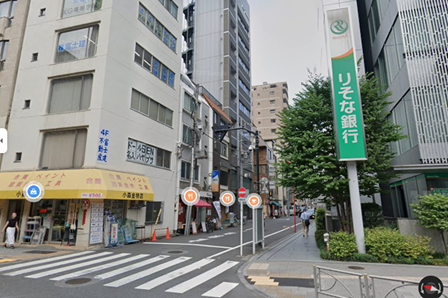 下記のりそな銀行の先を右に進みます。